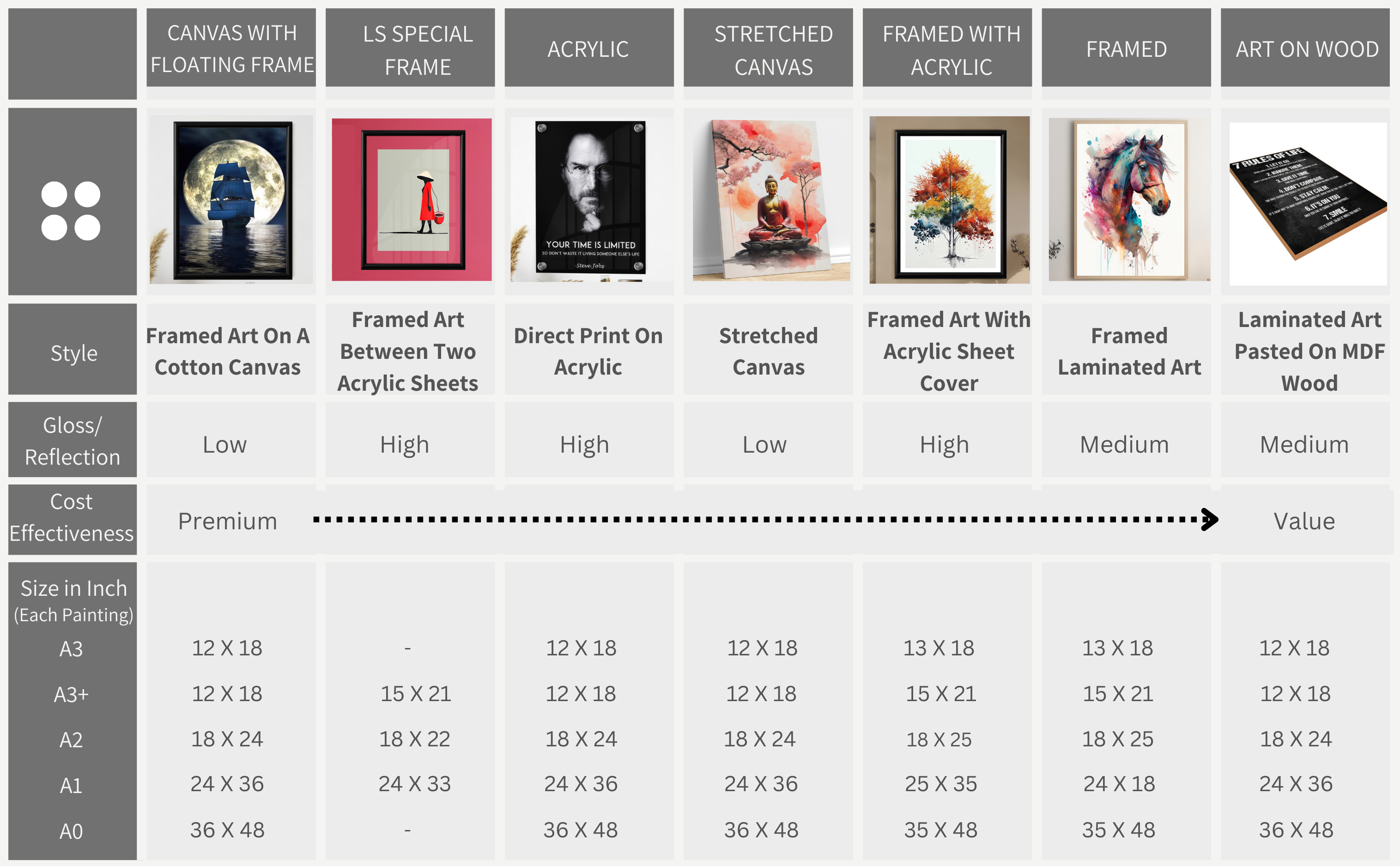 Print Media: 350 GSM Art Paper/ Highest Quality Cotton Canvas